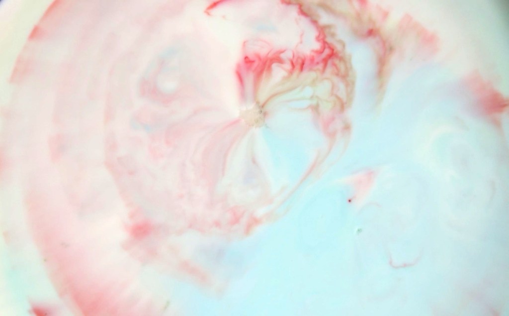 Food colouring and dish soap on milk.