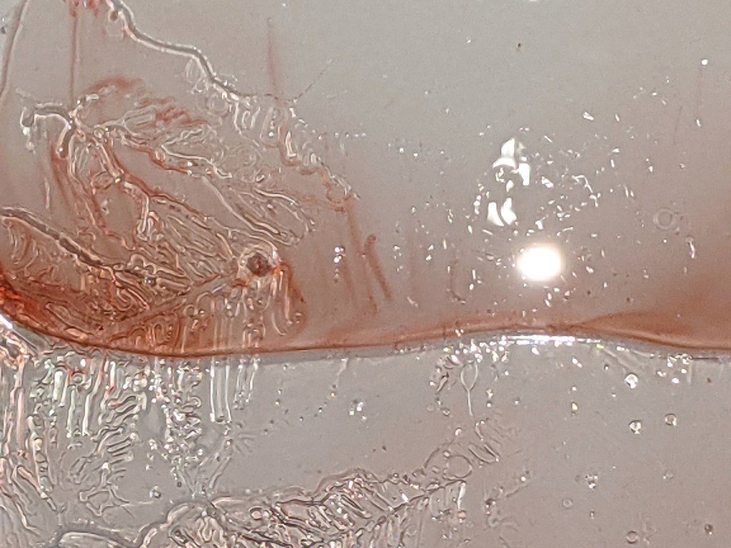 Digital photographs of ice and food colouring on bath
