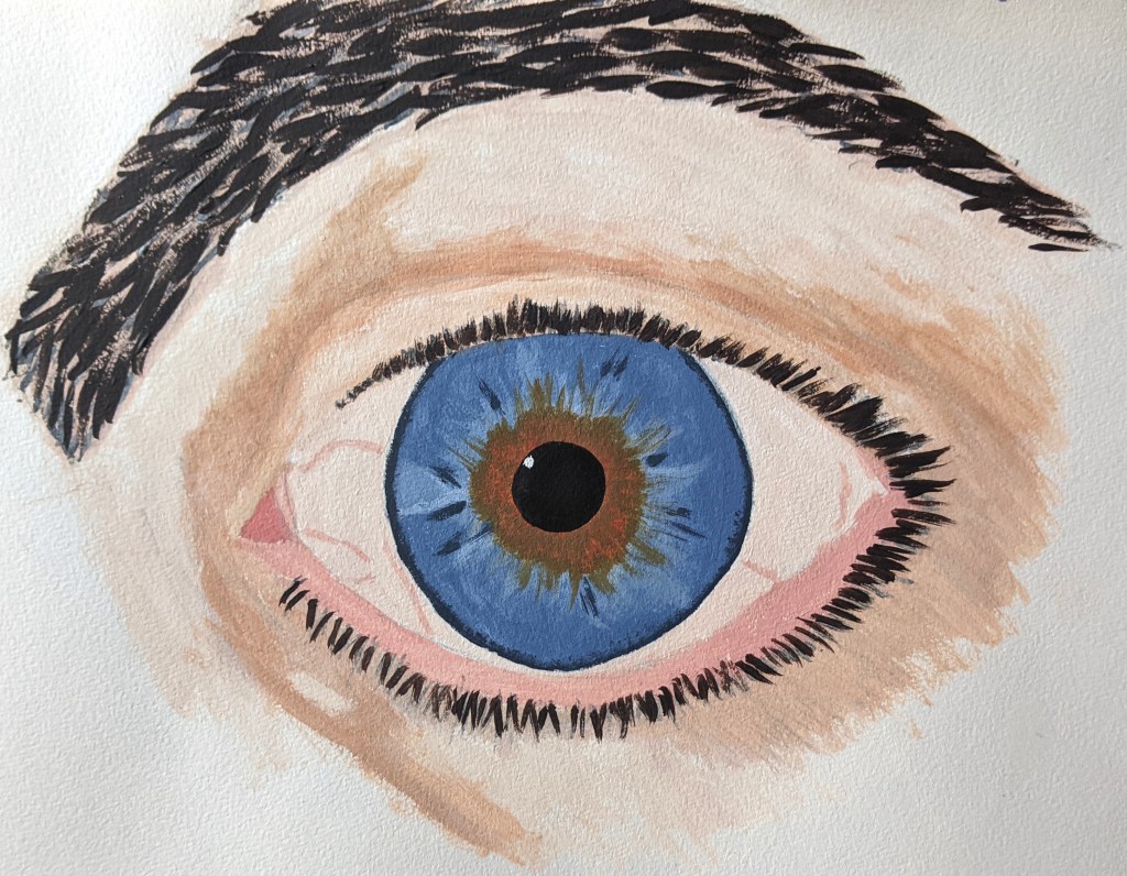 ArtworkSelf portrait November 3, 2021 Attic Mirror Acrylic on paper Hey, no-one said I had to do my whole self! Share this: Share on X (Opens in new window) X Share on Facebook (Opens in new window) Facebook Like Loading... Related