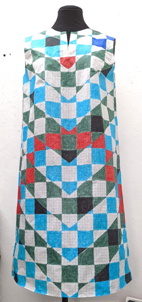 For constructivism I decided to make a paper dress and for some reason thought that colouring it with felt-tip pens was a good idea. It took forever and I really didn’t enjoy it. 🙂