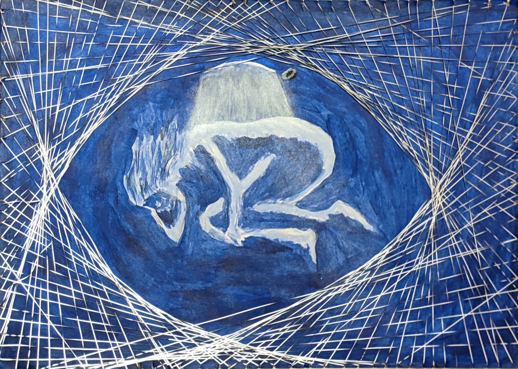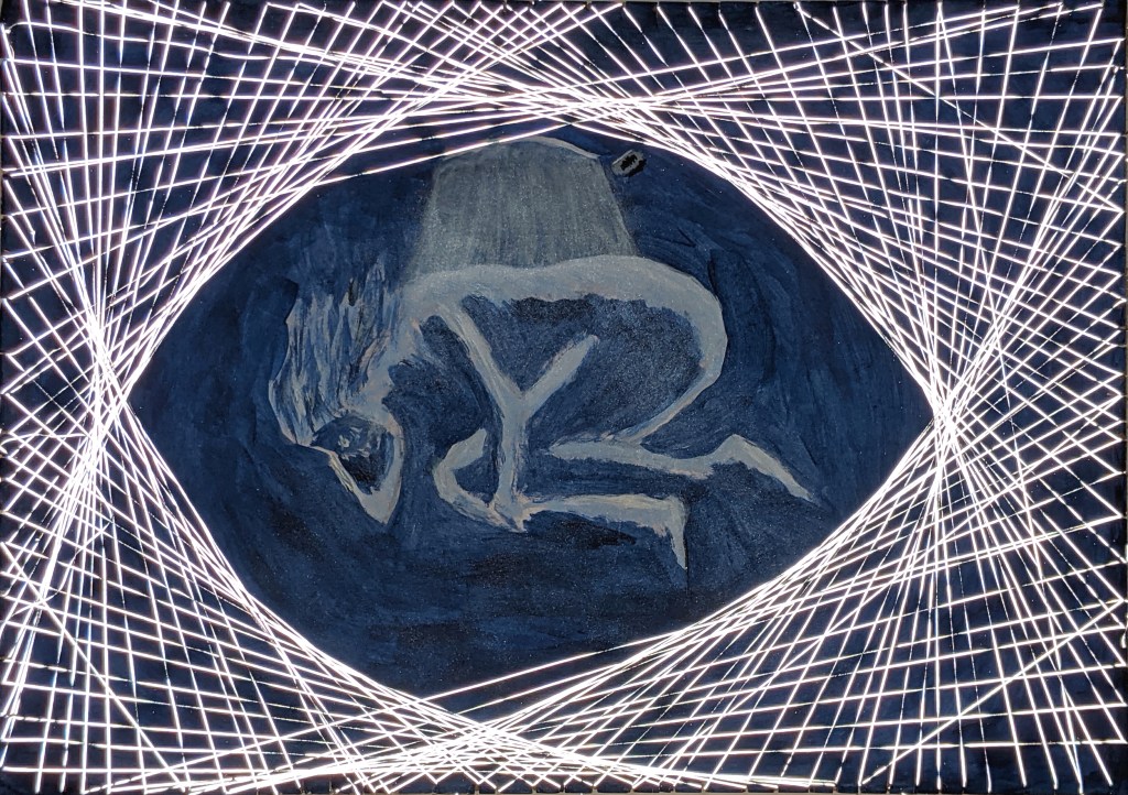 Acrylic and reflective filament on paper